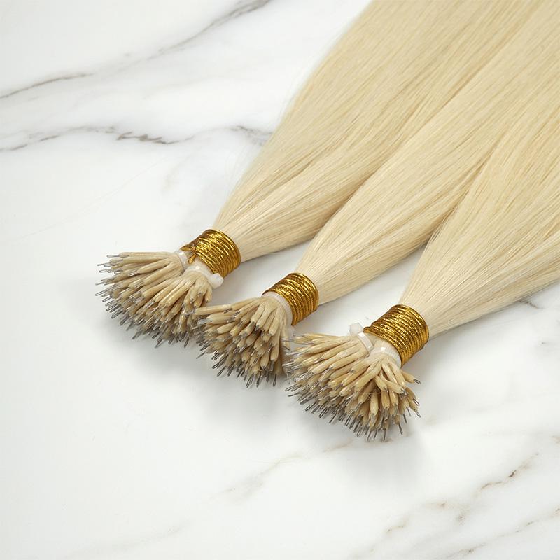 Double Drawn Nano Ring Human Hair Extension Weaving Silver Color Cuticle Aligned Human Virgin Hair Nano Bead Hair